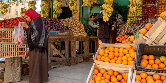 An Egyptian woman shops at a fruit market in Cairo, on March 17, 2022. - Soaring bread prices sparked by Russia's invasion of Ukraine have bitten into the purchasing power of consumers in Egypt, a leading importer of wheat from the former Soviet states. (Photo by Khaled DESOUKI / AFP) (Photo by KHALED DESOUKI/AFP via Getty Images)