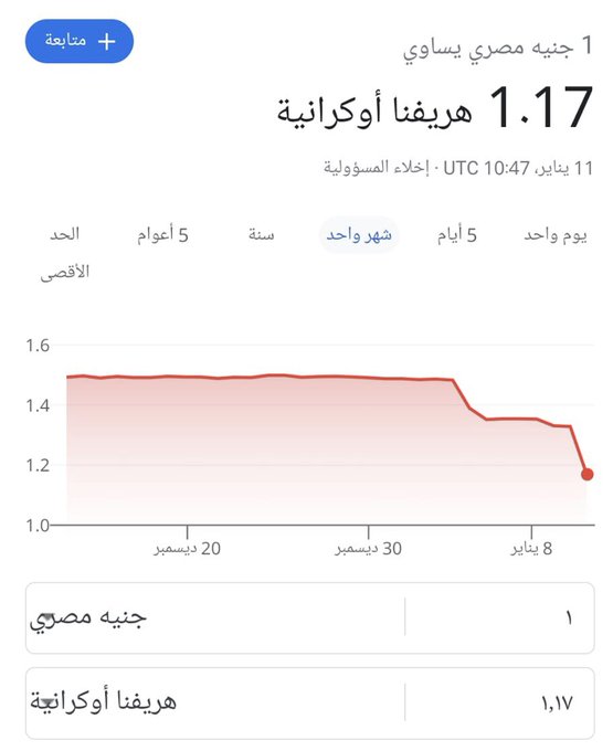 وأشار حساب عمر الفطاطري (@OElfatairy) إلى أن "الجنيه ينهار أمام عملة أوكرانيا (اللى فيها الحرب) فاهمين حاجة يامصريين".