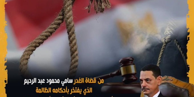 وكتب "من قضاة الغدر سامي محمود عبد الرحيم الذي يفتخر بأحكامه الظالمة وأنه رجل النظام ومثله كثيرون أعدموا المظلومين.