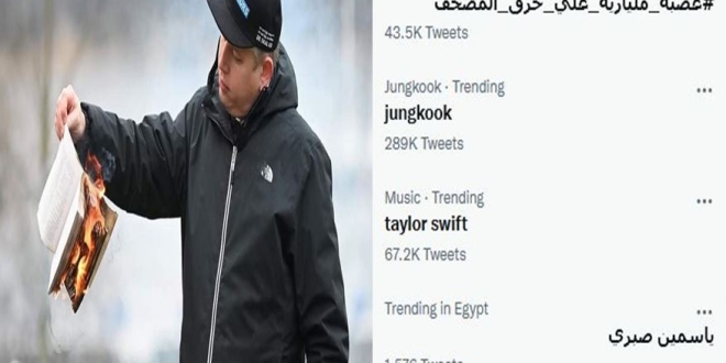 تصدر هاشتاج #غضبة_مليارية_على_حرق_المصحف ترند البلدان العربية في موجة غضب عارمة بعد إحراق المصحف الشريف أمام السفارة التركية في ستوكهولم تحت إطار ما يزعم أنه "حرية التعبير" إضافة لمظاهرات غاضبة في تركيا أمام السفارة السويدية.