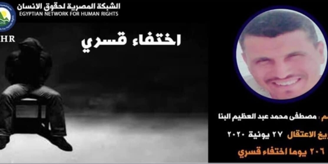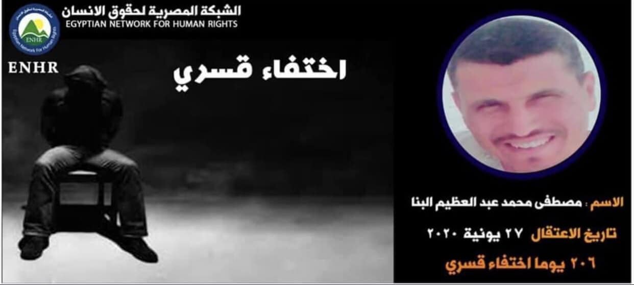 ووثقت "الشبكة المصرية لحقوق الإنسان" استمرار جريمة إخفاء المقاول مصطفى محمد عبد العظيم البنا، 49 عاما، منذ اعتقاله من منزله بقرية حوض ثابت ميت حلفا التابعة لمحافظة القليوبية، يوم السبت الموافق 27/6/2020، واقتياده إلى جهة مجهولة حتى الآن