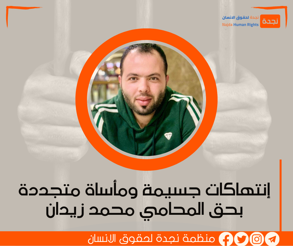 دانت منظمة "نجدة لحقوق الإنسان" الانتهاكات الجسيمة التي يتعرض لها المحامي محمد زيدان عواد عبد الحميد، منذ أن تم اعتقاله في 19 مايو 2021 من قبل قوات الانقلاب بالشرقية بشكل تعسفي دون سند من القانون .