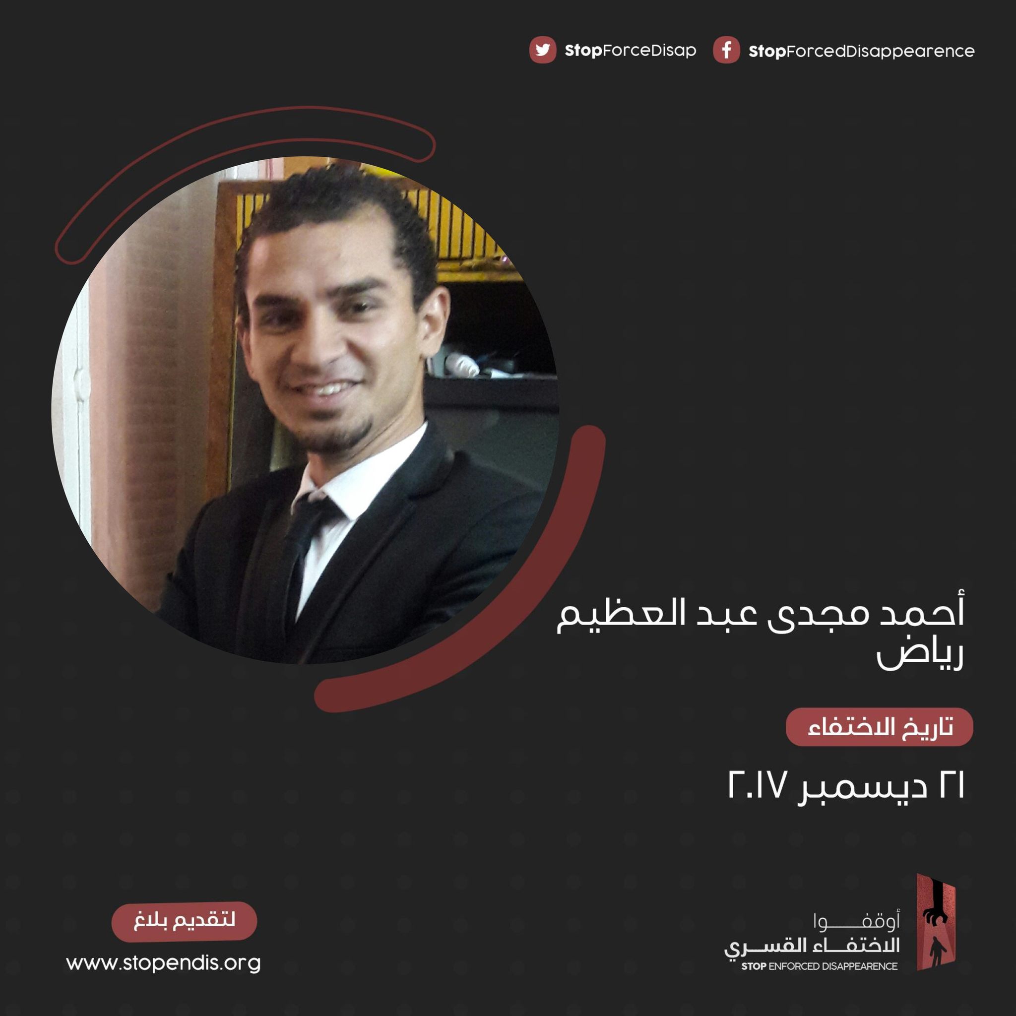 وجددت حملة أوقفوا الاختفاء القسري المطالبة بالكشف عن مكان احتجازه واحترام القانون ووقف الجريمة التي تعد جريمة ضد الإنسانية ولا تسقط بالتقادم .