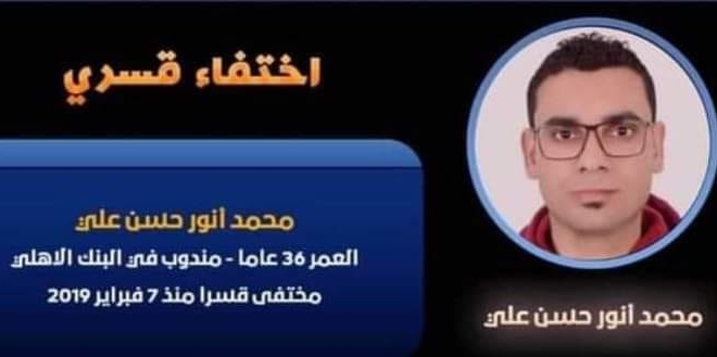 وفي وقت سابق وثقت العديد من المنظمات الحقوقية استمرار إخفاء المواطن المواطن محمد أنور حسن علي، 36 عاما، منذ أن تم اعتقاله بواسطة قوات من أمن الانقلاب بالجيزة، مدعومة بقوات من الأمن الوطني، عصر يوم السابع من فبراير 2019 أثناء مروره من أمام أحد الأكمنة الأمنية على الطريق الدائري بمنطقة المريوطية بمحافظة الجيزة، وجرى اقتياده إلى مكان غير معلوم، لتنقطع أخباره منذ ذلك اليوم.