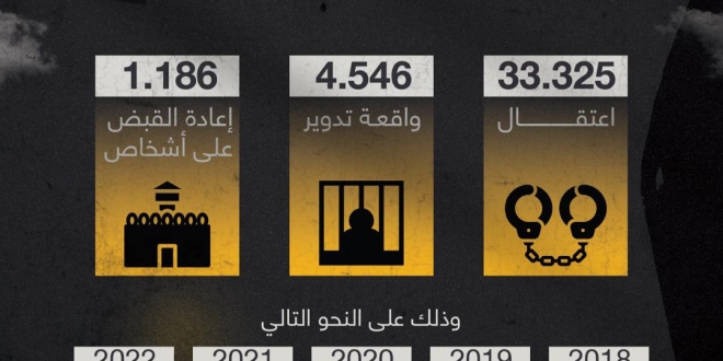 وأوضح في تقرير صادر عنها مؤخرا أنه تم القبض على 33325 شخصا، بالإضافة إلى 4546 واقعة تدوير و 1186 واقعة إعادة قبض على أشخاص سبق القبض عليهم وتم إطلاق سراحهم خلال نفس فترة الرصد.