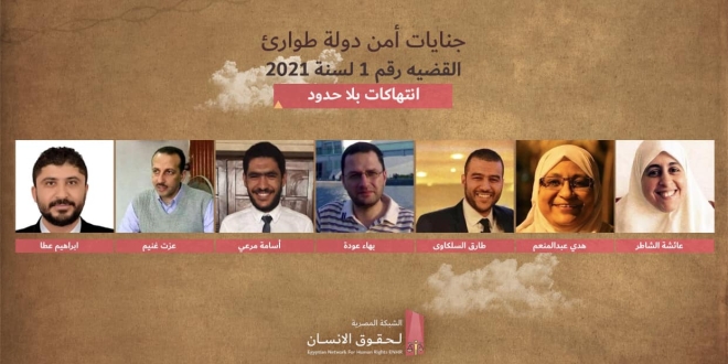 في حكم جائر جديد أصدرت محكمة أمن الدولة العليا طوارئ أحكاما مشددة في القضية المعروفة إعلاميا بـ"هزلية التنسيقية المصرية للحقوق والحريات".