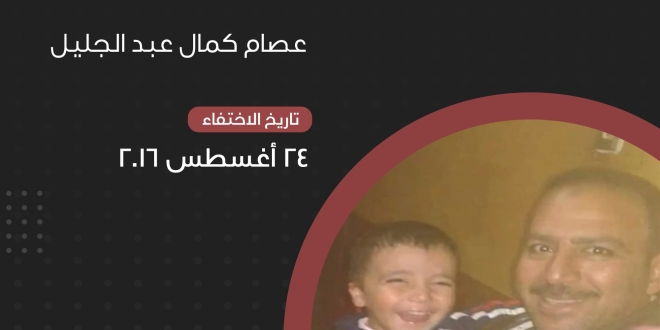للعام السابع على التوالي تواصل قوات الانقلاب في الجيزة جريمة الإخفاء القسري للمهندس عصام كمال عبد الجليل عبد العليم، 43 عاما، بعدما اعتقلته يوم يوم 24 أغسطس 2016 من مدينة السادس من أكتوبر.
