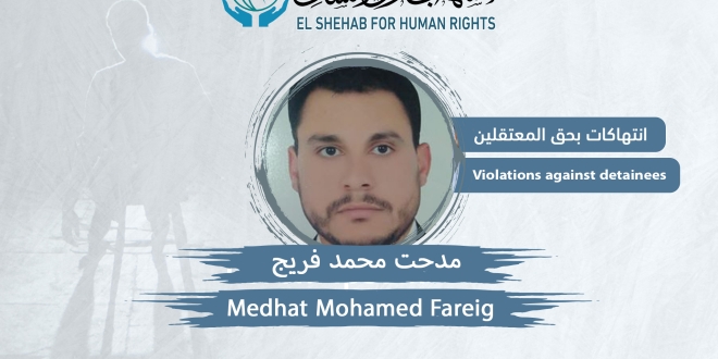 أطلقت أسرة المعتقل "مدحت محمد فريج أبو الخير" ويقيم بمركز سيدي سالم محافظة كفر الشيخ لوقف ما يتعرض له من انتهاكات منذ اعتقاله للعام الرابع، ورفع الظلم الواقع عليه والإفراج عنه.