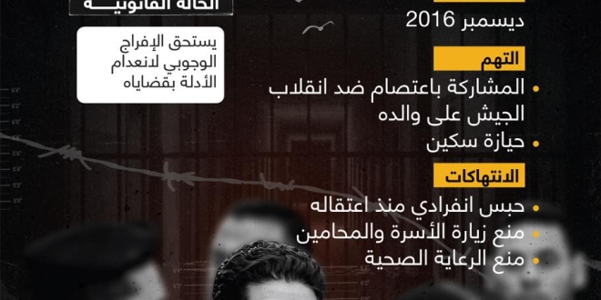 وأشارت إلى أنه منذ أن تم اعتقال "أسامة" في ديسمبر 2016 ويتم التنكيل به عبر سلسلة من الإجراءات بينها منعه من الزيارة منذ سنوات وحتى الآن، وعدم حصوله على الرعاية الصحية داخل محبسه مع استمرار حبسه الانفرادي الذي لا تتوافر فيه أدنى معايير حقوق الإنسان.