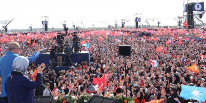 حشد حزب العدالة والتنمية التركي أكثر من مليون و700 ألف شخص تلبية لدعوة الرئيس التركي رجب طيب أردوغان، قبل أسبوع واحد من الانتخابات الرئاسية والبرلمانية في 14 مايو الجاري، حيث ينافس أردوغان 3 مرشحين على رأسهم مرشح الطاولة السداسية المعارضة، كمال كليجدار أوغلو، وتأتي قوة التجمع البشري كون إسطنبول تمثل 18% من أصوات الأتراك في الانتخابات المقبلة.