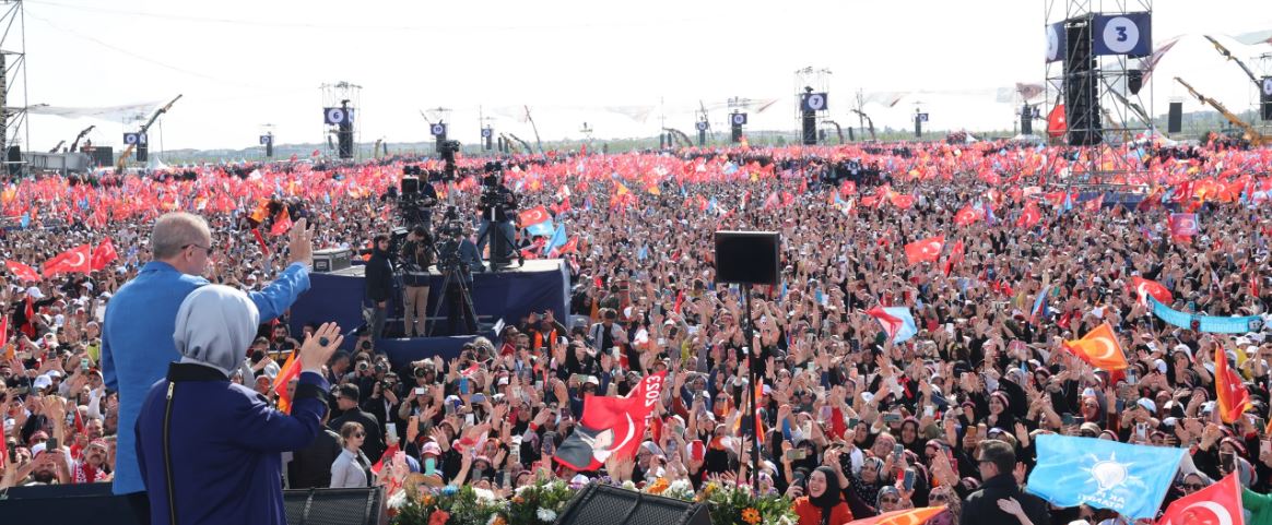 ففي حشد هائل اعتادته إسطنبول لمؤتمرات العدالة والتنمية التركي، سجل الرئيس التركي رجب طيب أردوغان حشودا هائلة من أنصاره في تجمع وصف بالتاريخي، الأحد 7 مايو 2023، متابعته لهجوم متزامن مع الانتخابات من عدد من الدوريات الغربية على شخصه وحزبه ومشروعاته منذ مؤتمر قوي عقده بأزمير بحشود هائلة لم تعتدها الولاية التي لم ترجح أصواتها من قبل حزب العدالة والتنمية وممثليه.