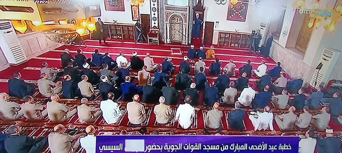 وكتب حساب المﻻك الحزين @Lido8080، "هل تعلم ان الإمام ال أم رئيس الجمهورية و كبار رجال الدولة و القوات المسلحة المصرية ف صلاة #عيد_الاضحى نسي قراءة الفاتحة ف الركعة الثانية!كبر الخمس تكبيرات ثم قرأ اذا جاء نصر الله و الفتح مباشرة! وصلاة العيد كانت منقولة تلفزيونيا ع الهواء! ياترى ده نتيجة الخوف م #السيسي ولا سهو".