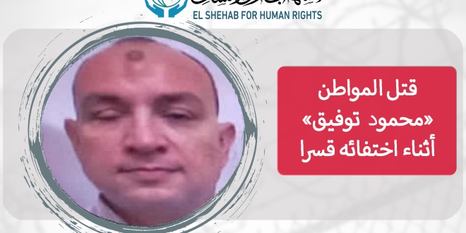 رصدت الشبكة المصرية لحقوق الإنسان استشهاد المعتقل محمود توفيق، أول أمس الجمعة داخل محبسه، وذلك بعد اعتقاله تعسفيا قبل 12 يوما من وفاته، والتعدي عليه بالضرب المبرح أثناء اعتقاله.