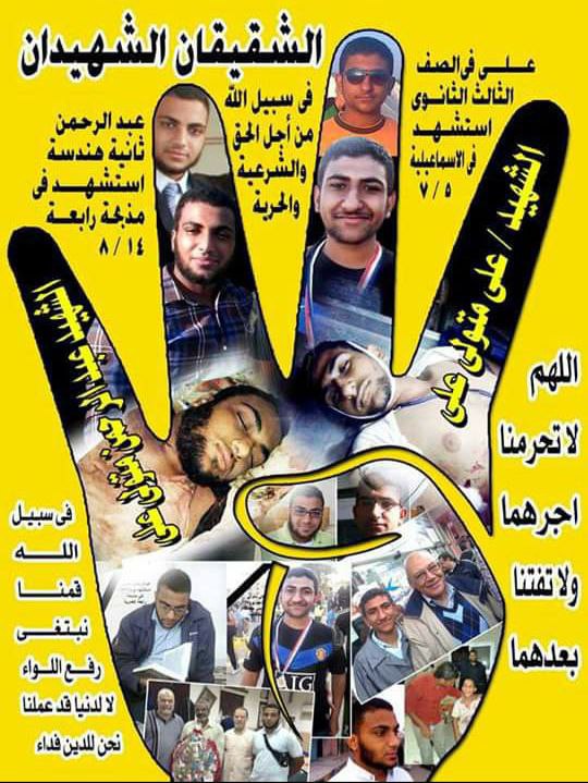أكد متولي علي صالح والد الشهيدين "عبد الرحمن" و"علي" أن حق الشهداء لن يضيع ولا يسقط بالتقادم مهما طال الزمان وأن أولياء الدم متمسكون بحق محاكمة هؤلاء القتلة والقصاص منهم حتى يكونوا عبرة لغيرهم ممن سفكوا الدماء وانتهكوا الحرمات وتطاولوا على الشعب.