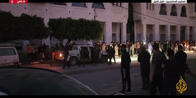 بثت كتائب القسام -الجناح العسكري لحركة المقاومة الإسلامية “حماس” – مشاهد جديدة لمراسم تسليم المحتجزين الإسرائيليين في ساحة فلسطين وسط مدينة غزة في ثالث عملية تبادل مع جيش الاحتلال خلال الهدنة المؤقتة.