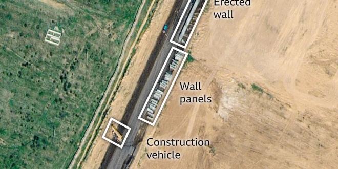 وقالت المجموعة في تقرير في وقت سابق من هذا الأسبوع إن اللقطات – التي لم تتحقق منها بي بي سي – تظهر سياجا يضم جدرانا بارتفاع سبعة أمتار يتم بناؤها في المنطقة.