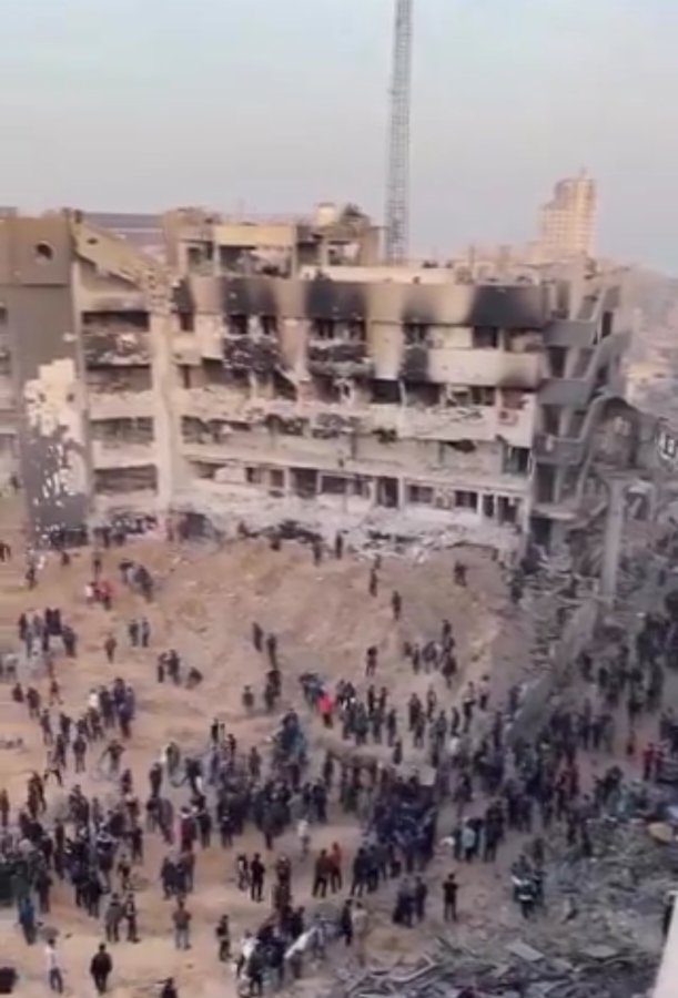 واستنكرت حكومة غزة بأشد العبارات جريمة الاحتلال الإسرائيلي ضد المدنيين الفلسطينيين وضد الأحياء المدنية وضد الأبراج والعمارات السكنية وضد المنازل الفلسطينية، وندعو كل المنظمات الأممية والدولية وكل دول العالم الحر إلى إدانة هذه الجريمة التي كررها الاحتلال مئات المرات في قطاع غزة منذ بدء حرب الإبادة الجماعية ضد شعبنا الفلسطيني.