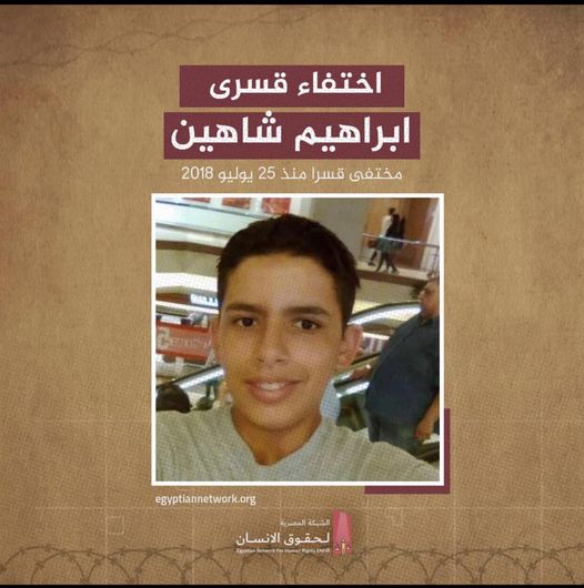 بدأت مأساة الأسرة عندما اعتقلت داخلية الانقلاب الطفل” إبراهيم محمد إبراهيم شاهين ” مع والده من منزل الأسرة بالعريش بمحافظة شمال سيناء فى 25 يونيو 2018، ثم أعلنت الشرطة عن تصفية والده فى سبتمبر 2018، لتتضاعف هموم أسرة مصرية أصيبت بفقدان الأب واستمرار إخفاء الابن .