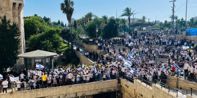 ووصلت مسيرة الأعلام الإسرائيلية إلى طقس الرقص، بعدما بدأت رسميا في شارع يافا وانطلقت باتجاه باب العامود والحي الإسلامي وبدأت الرقصات التلمودية في الساعة 6 مساء الأربعاء 5 يونيو 2024.