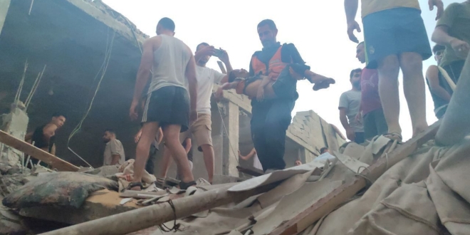 وفي شمال قطاع غزة، أفادت وكالة “الأناضول” بأن المقاتلات الإسرائيلية قصفت مدرسة “غازي الشوا”، التي كانت تأوي مئات العائلات النازحة في بلدة بيت حانون، بثلاثة صواريخ، ما أدى إلى تدميرها بشكلٍ كامل.