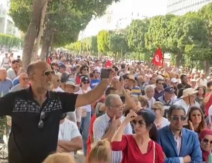 وهتف المحتشدون “مناش ساكتين” وهم يشرعون بالتوافد بالعشرات لمظاهرات 22 سبتمبر التي دعت لها (الشبكة التونسية للحقوق والحريات) بتنظيم احتجاج سلمي أمام المسرح البلدي بشارع بورقيبة بتونس العاصمة؛ للمشاركة في مظاهرات ضد نظام قيس سعيد قبل يومين فقط من الانتخابات الرئاسية بتونس.