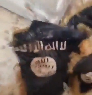 وأضاف علي : ” لمن يتهم المجاهدين والفصائل العسكرية للمعارضة السورية بالتطرف والإرهاب، شاهد ماذا وجد المجاهدون بمقراتهم اكتشف المجاهدين والثوار أعلام #داعش في المقر الروسي ب #دير_الزور مع ملابس باكستانية، هذه دليل كافي”.