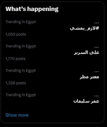 تصدر هاشتاج #لازم_يمشي الذي أطلقته اللجنة الثورية بحزب #تكنوقراط_مصر وقال حزب تكنوقراط مصر @egy_technocrats “الرسالة الأولى، إلى الشعب المصري، حزب تكنوقراط مصر جاهز بالبديل المدني، السيسي #لازم_يمشي”.