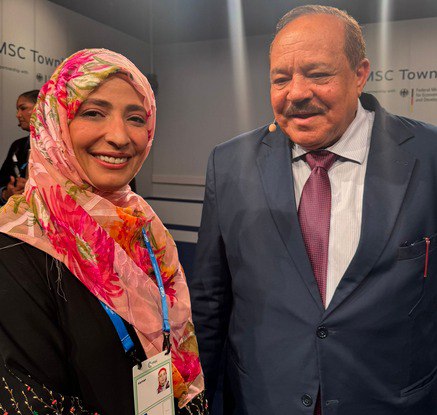 كشفت النشطة السياسية اليمنية الحاصلة على جائزة نوبل للسلام توكل كرمان أنها  تحدثت مع وزير الخارجية السوداني في مؤتمر ميونخ للدفاع والأمن، المخصصة للحديث عن رؤية حكومته لتحقيق السلام والديمقراطية في السودان، أن سودانًا خاليًا من ميليشيات الجنجويد الإرهابية وبقية الميليشيات المستأجرة العابرة للحدود ليس فقط حاجة ملحة على المستوى السوداني أو الإقليمي، بل هو ضرورة من أجل الأمن والسلام العالمي.