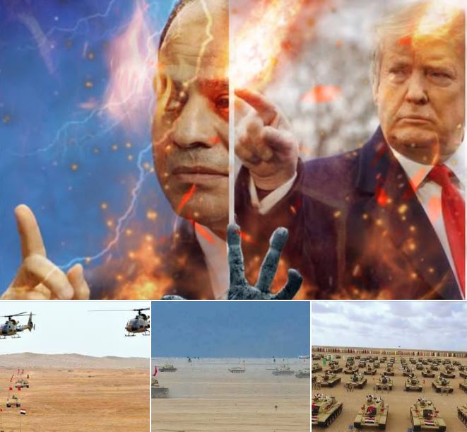 أمام تكبير إعلام انقلاب ولجان محسن عبدالنبي من شأن قوة جيش السيسي على إدعاء مقاومة المشاريع الامريكية وهو بالفعل أحد رجالاتها من عينة تصريح مصطفى بكري : “اللي هيفكر يحط رجله في سيناء هنقطعاله.. حدودنا خط أحمر” وبوست منتشر نشرته صفحة “الجيش المصري رجال” وهي لجنة وتتداوله لجان وصفحات المخابرات عن اعلان حرب/السيسي محدش يقدر يعمل حاجة يحمل البوست كالعادة مجموعة من المزاعم وأدلتها ادعاءات أن السيسي أمام ترامب “واثق وقوي في كلماته، ويؤكد قدرة مصر على مواجهة التحديات والتهديدات” وأنه “صارم في تعبيراته، مما يعكس قوة موقفه” وذلك في تعليق على كلمته في ليلة القدر أن “ربنا في ظهرنا”!