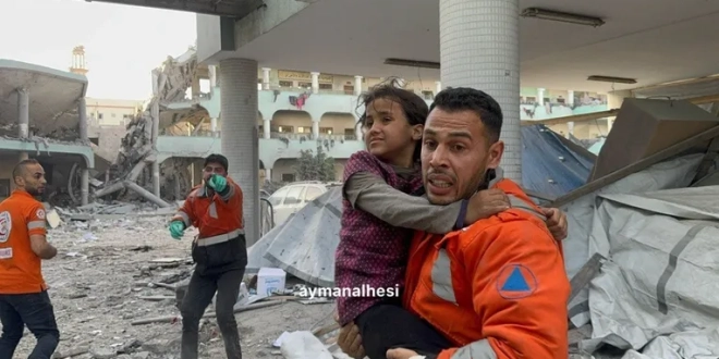وقالت مصادر محلية، إن قوات الاحتلال استهدفت أحد مباني المدرسة، المكتظة بالنازحين، بثلاثة صواريخ حربية ثقيلة، ما تسبب في المجزرة وتدمير كبير في المكان.
