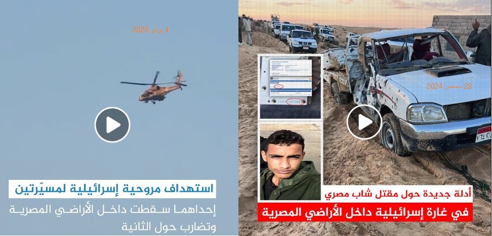 ولفتت مؤسسة سيناء لحقوق الإنسان عبر @Sinaifhr إلى أن الحادثة تأتي "في ظل تصاعد التوترات الإقليمية، وتزايد نشاط الطائرات المسيّرة في أجواء المنطقة، مع استمرار الانتهاكات الإسرائيلية للسيادة المصرية منذ اندلاع أحداث السابع من أكتوبر 2023.".