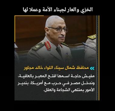 ولفت مصطفى أحمد Mostafa Ahmed Abdelazem إلى أن "مجاور"، كان مدير مخابرات عسكرية قبل محافظ شمال سيناء.