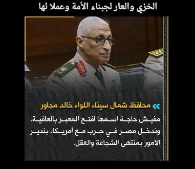 ولفت مصطفى أحمد Mostafa Ahmed Abdelazem إلى أن "مجاور"، كان مدير مخابرات عسكرية قبل محافظ شمال سيناء.