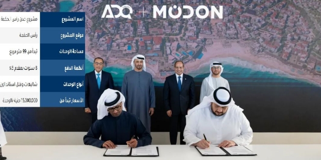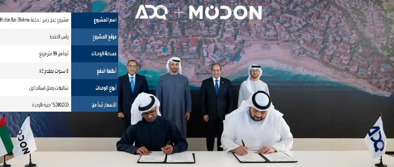 وتسلمت القابضة ADQ التابعة لحكومة أبوظبي، وصاحبة مشروع "تطوير رأس الحكمة"، المرحلة الأولى من أراضي المنطقة، في مارس الماضي، بعد أن "نجحت" حكومة السيسي في إخلائها من الأهالي في حين عينت "ADQ" مجموعة مدن، التابعة لها، مطورًا رئيسيًا لمشروع رأس الحكمة،