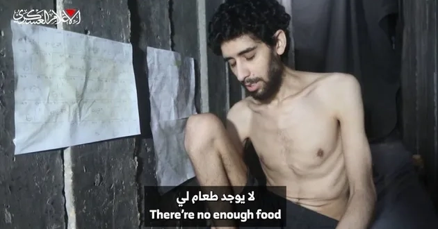 لكن في المشاهد الحالية بدا الأسير نحيل الجسد، بصورة كبيرة وعظامه بارزة، وقالت القسام، "يأكلون مما نأكل، قررت حكومة الاحتلال تجويعهم".