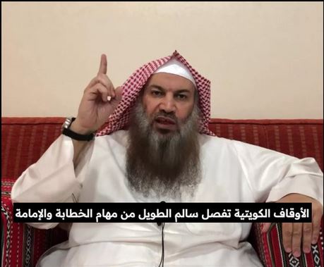 لم يتدخل أحد في إلى الآن في قرار وزارة الشؤون الإسلامية والأوقاف بالكويت بفصل "سالم الطويل" من مهام الإمامة والخطابة بعد ثبوت مخالفته لميثاق المساجد، كما قررت حرمانه من منزله الذي منحته إياه الأوقاف وسحبته منه، وقالت إنه مخصص للائمة بعد فصله وفقدانه شرط الحصول على المنزل وتمهله 3 أشهر لتسليمه، بحسب @NetworkKw.