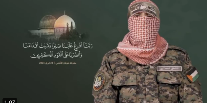 "فلسطين ليست أرضًا تُحتل بل روح أبيّة تتوارثها الأجيال" وهي من كلمات القائد أبو عبيدة الذي لم تعلن حركة حماس إلى الآن اسمه، وإن أعلنت الأحد 31 أغسطس ارتقاءه شهيدا، والملثم الذي بدأ مع انتفاضة الأقصى يرفع شعار "إن استُشهد القائد فلن ينطفئ الثوار معه، بل تتحول كل قطرة من دمه إلى شعلة تحرق دروب الظلم وتنير طريق المقاومة، وإن كان حيًا فستظل قوته الحية شعلة تدفعهم للأمام، لتظل المقاومة حية لا تلين أمام أي عدو".
