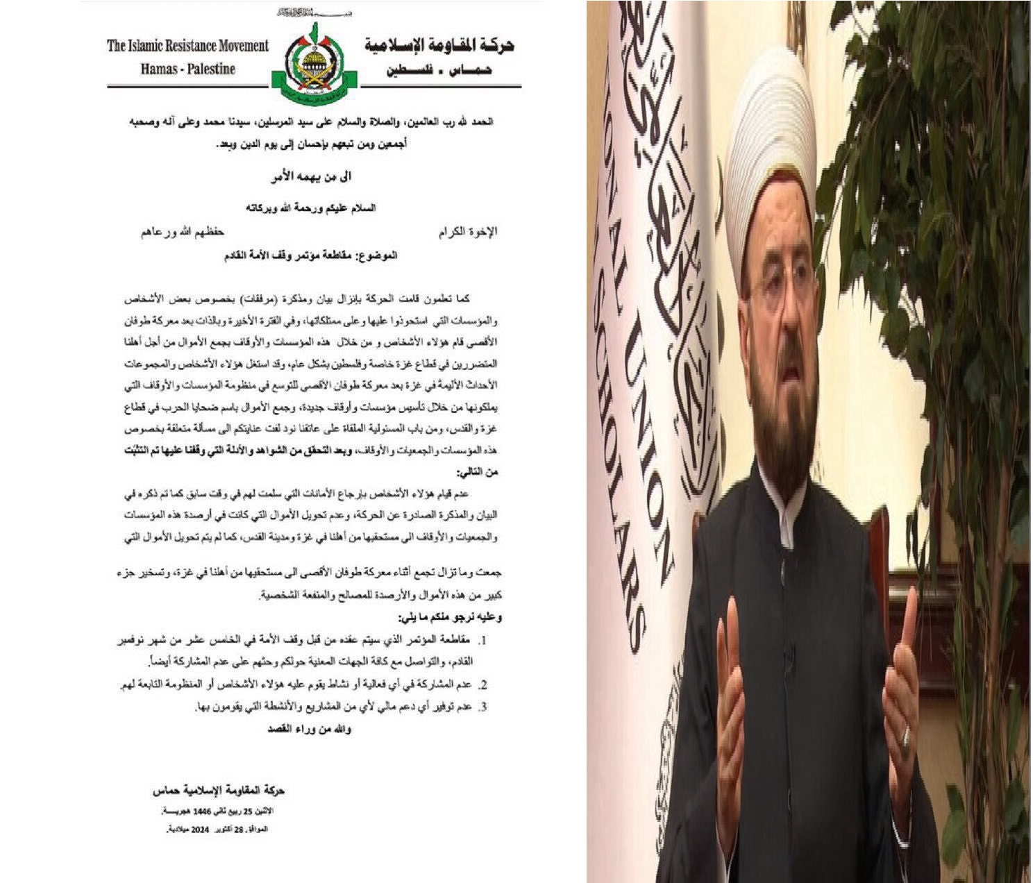 أعلن الدكتور علي محي الدين القرة داغي رئيس الاتحاد العالمي لعلماء المسلمين ومعه الشيخ د.علي الصلابي والشيخ د.محمد الحسن الددو من مؤتمر وقف الأمة بعد الضجة مشيرا إلى أم مؤتمر "وقف الأمة" الذي أُعلن أنه لدعم غزة، لكن الاتحاد العالمي لعلماء المسلمين انسحب منه مبكرًا واتهم المنظمين باستخدام أسماء قياداته دون إذن، وسط شبهات تتعلق بسوء إدارة أموال التبرعات. حركة حماس من جانبها كانت في موضع حساس، إذ إن بعض الأطراف حاولت ربطها بالمؤتمر، بينما الاتحاد شدد على أن دعمه لغزة لا يمر عبر جهات مشبوهة.