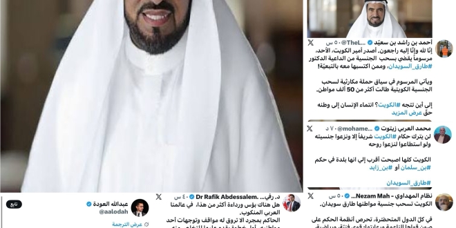 وجاء هذا التقييم مجددًا لرجل أُدرج ضمن قائمة أكثر 500 شخصية إسلامية تأثيرًا في العالم عام 2022، بعدما أصدرت السلطات الكويتية في ديسمبر 2025 مرسومًا أميريًا يقضي بسحب الجنسية الكويتية من الدكتور طارق السويدان، الداعية والقيادي المعروف بصلاته بجماعة الإخوان المسلمين، إضافة إلى أفراد من أسرته ممن اكتسبوا الجنسية بالتبعية.