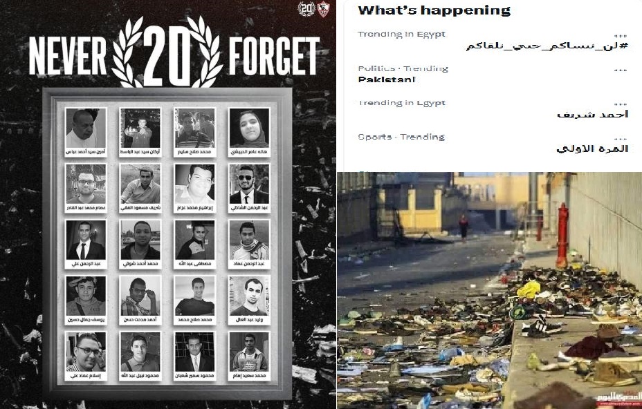 وعبر رواد مواقع التواصل الاجتماعي عن الذاكرة الجمعية وحزنهم المتجدد، مؤكدين أن هؤلاء الشهداء لم يكونوا مجرد مشجعين، بل رمزًا لجيل كامل كان يبحث عن الحرية والعدالة حتى في مدرجات كرة القدم، الصور والرسائل التي انتشرت على تويتر وفيسبوك حملت دعوات بالرحمة للشهداء، وتذكيرًا بأن القضية لم تُغلق بعد، وأن العدالة لم تتحقق بحق من تسببوا في هذه الكارثة.