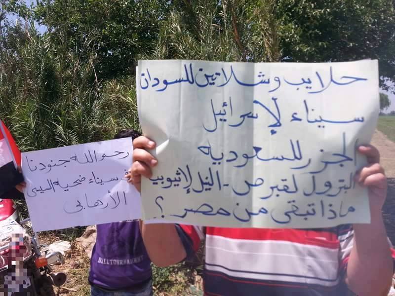 رفع المشاركون في الوقفة لافتات مكتوبًا عليها: "باع الأرض وباع النيل.. السيسي خاين وعميل"، "تيران وصنافير للسعودية، والغاز لقبرص، وحلايب وشلاتين للسودان"، "ارحل"، عواد باع أرضك"، "مرسي صان والسيسي باع وخان" "يسقط يسقط حكم العسكر".