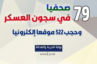 كشف منظمات حقوقية عن استمرار اعتقال 79 صحفيا وإعلاميا في سجون الانقلاب وحجب 522 موقعا إلكترونيا بدعوى انتقادها لنظام الانقلاب، مشيرين إلى التضييق علي العديد من المفرج عنهم من ...