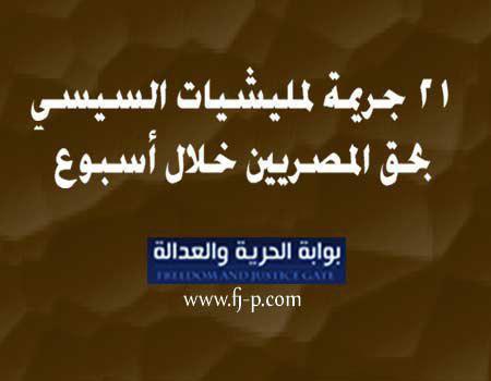 شهدت الفترة من 4 أغسطس وحتي 10 أغسطس الجاري ارتكاب داخلية الانقلاب 21 جريمة وانتهاكا لحقوق الانسان ، تنوعت بين اعتقال وإخفاء قسري والقتل خارج القانون. واحتلت محافظة ...