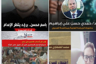 تتواصل مطالبات حملة "أوقفوا الإعدامات" بالحياة للأبرياء الصادر ضدهم أحكام إعدامات من محاكم العسكر الجائرة، التى تفتقر إلى شروط التقاضي العادل؛ لموقفهم من التعبير عن رفض الظلم والفقر ...