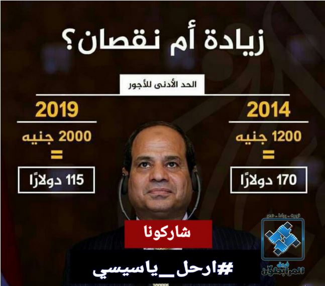 عاد هاشتاج #ارحل_يا_سيسي مرة أخرى للظهور بقوة على مواقع التواصل الاجتماعي، بعدما كشف نشطاء عن خططه الفاشلة لزيادة الرواتب؛ تمهيدًا لرفع مطلق للأسعار لا توازيها نسبة الزيادة في ...