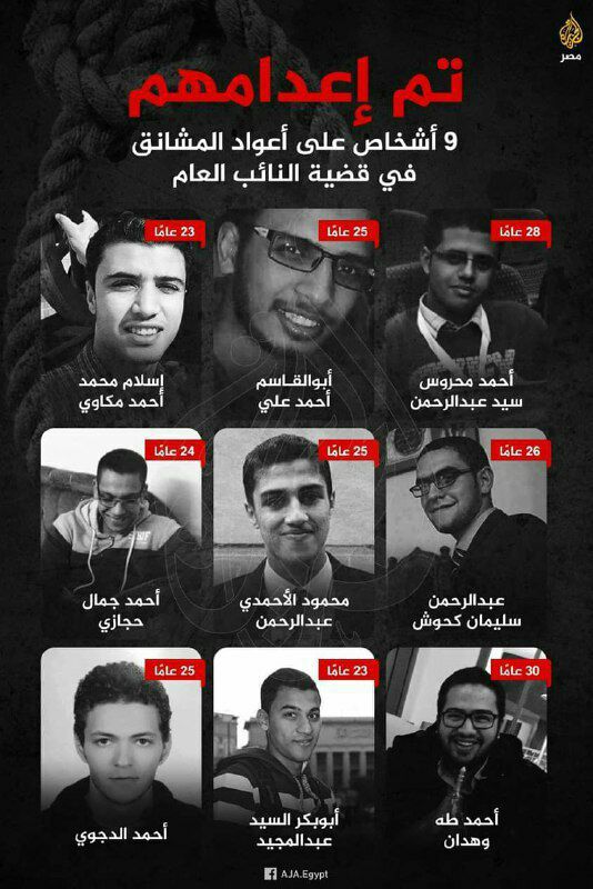 أحصى نشطاء على مواقع التواصل الإجتماعي عدد الأبرياء الذين أعدمهم نظام الانقلاب العسكري في قضايا عسكرية، والذين وصل عددهم إلى 43 شخصا اعتبارا من 3 يوليو 2013 وحتى ...