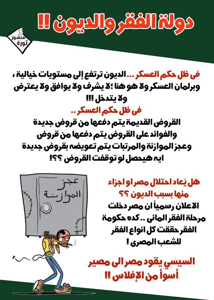 تسعى حكومة العسكر إلى إفقار الشعب وتكبيله بالديون التي لا تنتهي. هذا ما استعرضه إنفوجراف “منشور ثورة” الذي أِشار إلى أنه يتم الآن توريث الفقر والديون بعدما احتلت ...