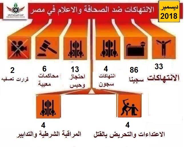 أكد أحدث تقرير شهري للمرصد العربي لحرية الإعلام أن ديسمبر 2018 شهد العديد من الانتهاكات الكبرى التي قام بها الانقلاب العسكري بحق الإعلاميين وأحصى المرصد نحو 86 صحفيا ...