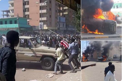 تنتشر الآن في شوارع الخرطوم ومناطق متفرقة من السودان، معدات عسكرية ثقيلة ودبابات وقوات نظامية ضخمة من المجندين في مناطق متفرقة، وقناصة يعتلون المباني المحيطة بالقصر الرئاسي، بالتزامن ...