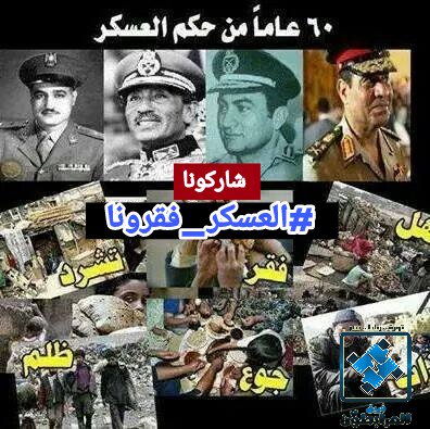 أطلق نشطاء هاشتاج #العسكر_فقرونا بعدما أعاد السيسي نفس النوتة الموسيقية التي كان يتبناها جمال عبدالناصر في خطاباته ومواقفه منذ 1945 وحتى مقتله، فلم يتجد لدى جميع ضباط العسكر ...